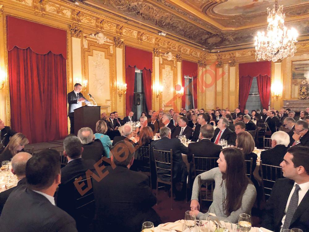 Η φιλοξενία στο Μetropolitan, έναν χώρο που τιμά τον αυριανό πρωθυπουργό, κατέστη δυνατή χάρη στη γενναιοδωρία του Γιάννη Κατσιματίδη και του Μιχάλη Ψαρού» είπε ο κ. Διαμαντάρης. Στη συνέχεια το λόγο πήρε ο πρώην πρέσβης της Ελλάδας στην Ουάσιγκτον Λουκάς Τσίλλας που καλωσόρισε τον Κυριάκο Μητσοτάκη με μια μαντινάδα. «Είσαι της αστραπής παιδί και της βροντής εγγόνι. Σα θες αστράφτει και βροντά, σα θέλεις πέφτει χιόνι», είπε καταχειροκροτούμενος από τους καλεσμένους. Το μεγαλύτερο μέρος της 20λεπτης ομιλίας του ο Κυριάκος Μητσοτάκης το διέθεσε προκειμένου να περιγράψει το προβληματικό θεσμικό πλαίσιο για τις επενδύσεις στην Ελλάδα και την ανάγκη να αλλάξει ριζικά ο τρόπος με τον οποίο αντιμετωπίζονται οι επενδυτές. Αναφέρθηκε μάλιστα συγκεκριμένα σε τρεις επενδύσεις που βαλτώνουν στη χώρα μας, στο Ελληνικό, τις Σκουριές και την Αφάντου στη Ρόδο. Οχι τυχαία, αφού σύμφωνα με πληροφορίες του Ελεύθερου Τύπου της Κυριακής είχε συναντηθεί κατ’ ιδίαν λίγο νωρίτερα με τον ομογενή επιχειρηματία Μερκούριο Αγγελιάδη που προσπάθησε να επενδύσει στην Αφάντου αλλά προέκυψε πλήθος προβλημάτων, κυρίως με την αρχαιολογία.