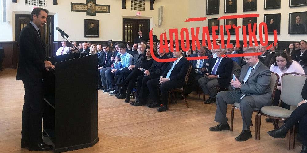 Η συνάντηση είχε γίνει λίγες ώρες πριν από την εκδήλωση στο ξενοδοχείο «New York Pallas» όπου έμεινε ο πρόεδρος της Ν.Δ. κατά το σύντομο πέρασμά του από τη Νέα Υόρκη. Αίσθηση άλλωστε προκάλεσε η φράση του Μερκούριου Αγγελιάδη προς τον κ. Μητσοτάκη, «αν δεν βγεις, πάμε χαμένοι», που βρέθηκε στο επίκεντρο των συζητήσεων στα πηγαδάκια του Μetropolitan. «Θα κινηθούμε με ταχείς ρυθμούς για να γίνουν επενδύσεις στη χώρα. Αυτό το μήνυμα στέλνω στη διεθνή οικονομική κοινότητα. Ελάτε στην Ελλάδα να επενδύσετε» είπε ο κ. Μητσοτάκης, τονίζοντας την ανάγκη να δημιουργηθούν ευκαιρίες και να σταματήσει η φυγή των νέων στο εξωτερικό, που, όπως είπε, ήταν μαζική την τελευταία επταετία.