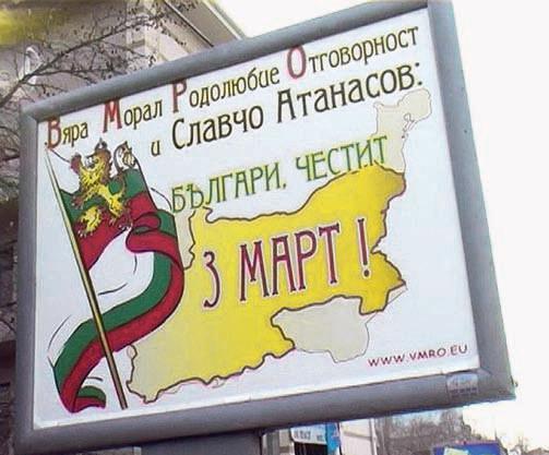 Πάντως, την ίδια στιγμή που στα Σκόπια αλλάζουν οι ονομασίες του αεροδρομίου και της εθνικής οδού και σχεδιάζεται η αποκαθήλωση αλυτρωτικών συμβόλων και μνημείων, στη γειτονική Βουλγαρία ξαναστήνονται αγάλματα τα οποία είχαν μπει στα χρονοντούλαπα της Ιστορίας. Ταυτόχρονα, πληθαίνουν σε δημόσιους χώρους οι αφίσες με τους χάρτες της «Μεγάλης Βουλγαρίας». Το πλέον εντυπωσιακό είναι ότι όλα αυτά γίνονται με πρωτοβουλία του εταίρου της βουλγαρικής κυβέρνησης, του ακραίου εθνικιστικού κόμματος «Ενωμένοι Πατριώτες».