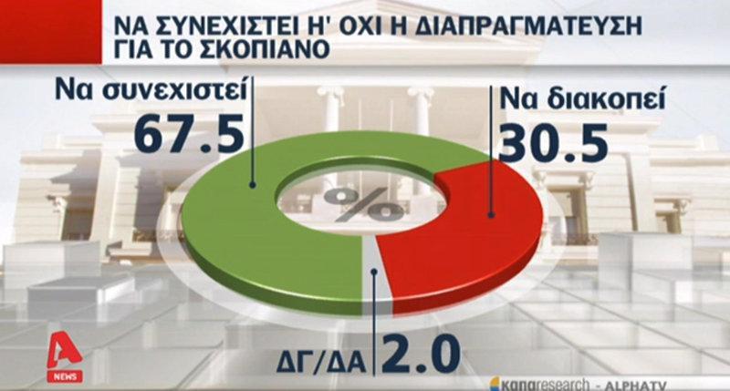 Το 67,5% τάσσεται υπέρ της συνέχισης της διαπραγμάτευσης. Ωστόσο το 53,4% θεωρεί ότι δεν θα υπάρξει τελική λύση.