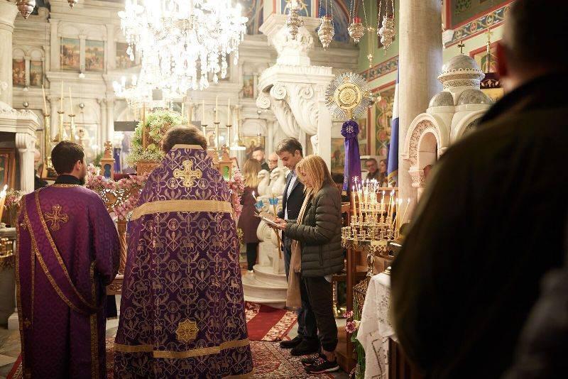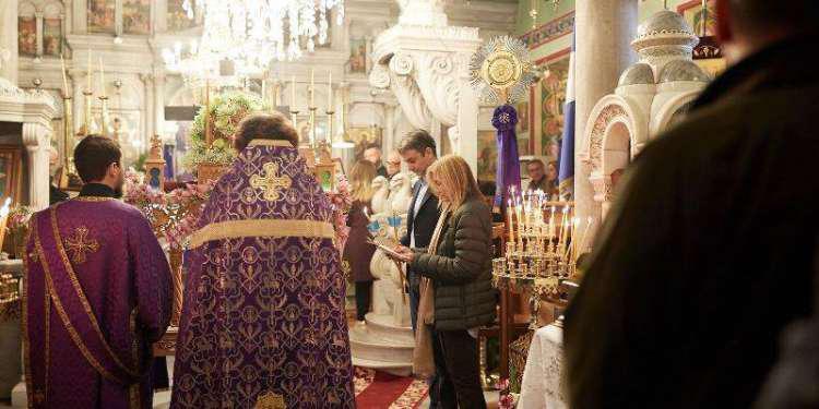 Χθες, Μ. Παρασκευή, ο αρχηγός της Νέας Δημοκρατίας παρακολούθησε την ακολουθία του Επιταφίου στο χωριό Καρδιανή, ενώ σήμερα παρακολούθησε την πρώτη Ανάσταση στην Παναγία της Τήνου.