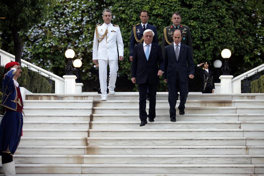 Στο πλαίσιο μιας λιτής τελετής, παρουσία του πρωθυπουργού Αλέξη Τσίπρα, των πολιτικών αρχηγών, Κυριάκου Μητσοτάκη, Φώφης Γεννηματά, Βασίλη Λεβέντη, Δημήτρη Κουτσούμπα, Σταύρου Θεοδωράκη, Πάνου Καμμένου, Βασίλη Λεβέντη καθώς και του προέδρου της Βουλής Νίκου Βούτση και του αρχηγού ΓΕΕΘΑ, ναυάρχου Ευάγγελου Αποστολάκη, ο Πρόεδρος της Δημοκρατίας τόνισε ότι σήμερα γιορτάζουμε με τον τρόπο που αρμόζει το κορυφαίο αυτό γεγονός και πρωτίστως με ενωμένες τις δημοκρατικές πολιτικές δυνάμεις της χώρας και παρόντες τους αντιστασιακούς, οι οποίοι εκπροσωπούν τη ζωντανή μνήμη της εποχής εκείνης στην επέτειο αποκατάστασης της Δημοκρατίας στην πατρίδα την 24η Ιουλίου του 1974.