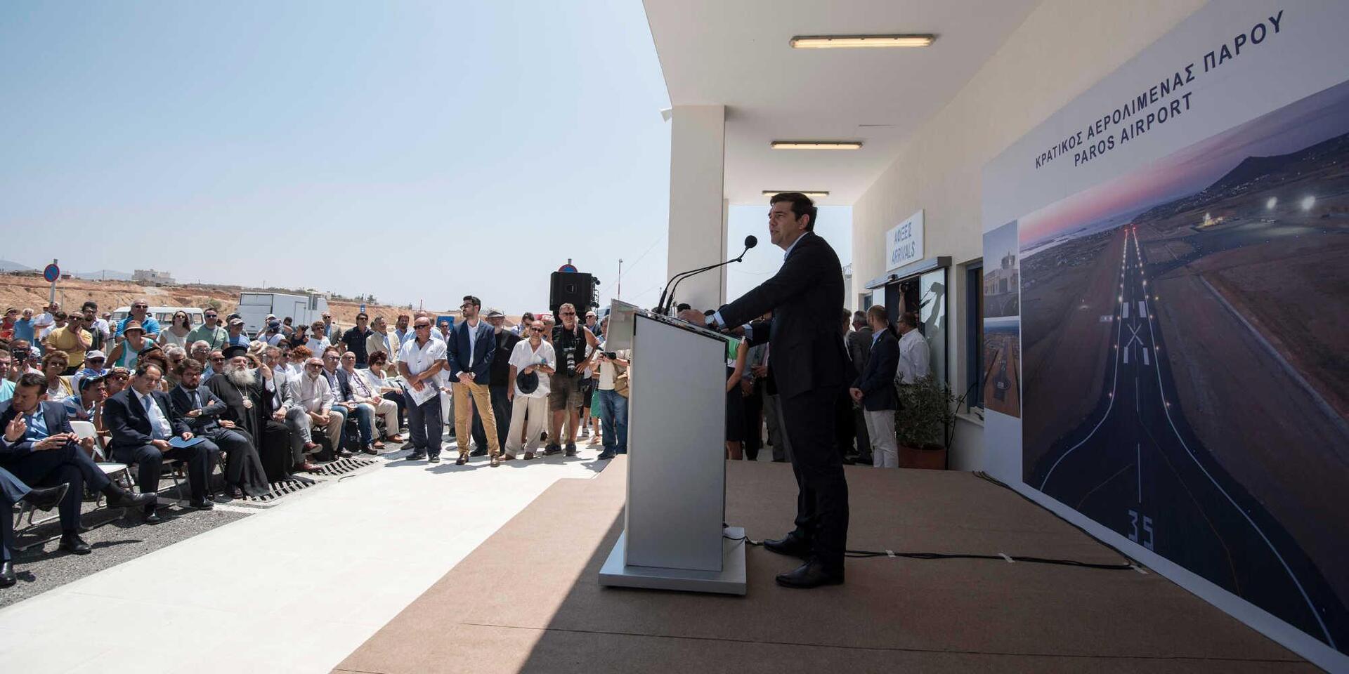 Ο κ. Τσίπρας υπογράμμισε ότι το νέο αεροδρόμιο αποτελεί υπόδειγμα και παράδειγμα πως όταν υπάρχει βούληση των κατοίκων και αγαστή συνεργασία ανάμεσα στην πολιτεία και τους ιδιώτες, τότε μπορεί να έχουμε σημαντικό αποτέλεσμα. Επίσης, επεσήμανε το οικονομικό όφελος από την υλοποίηση του έργου, αφού το Δημόσιο δεν θα χρειάζεται να πληρώνει 4,2 εκατ. ευρώ τον χρόνο στην επιδότηση της άγονης γραμμής, αλλά και το όφελος από την αύξηση της επιβατικής κίνησης, σημειώνοντας ότι πλέον πάνω από 300 άνθρωποι θα μπορούν, καθημερινά, να κλείνουν φθηνά εισιτήρια και να φθάνουν στην Πάρο.