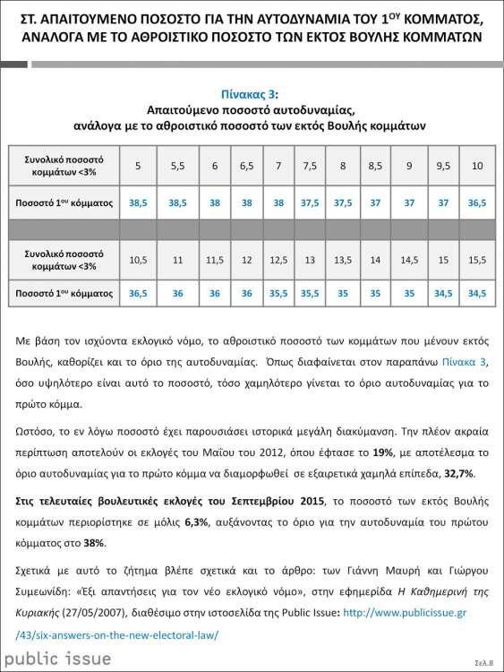 - Tέλος, τα νεοπαγή κόμματα που σχηματίστηκαν κατά τον τρέχοντα εκλογικό κύκλο (Ελληνική Λύση, Εθνική Ενότητα, Μέρα 25) δεν εμφανίζουν δυναμική εισόδου στη Βουλή. Ως εκ τούτου, η επόμενη Βουλή αναμένεται να έχει το πολύ 6 κόμματα (6κομματική).