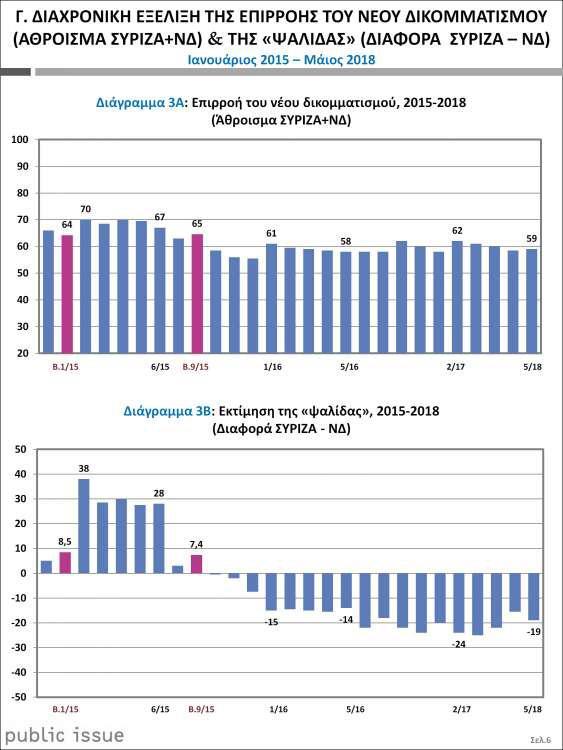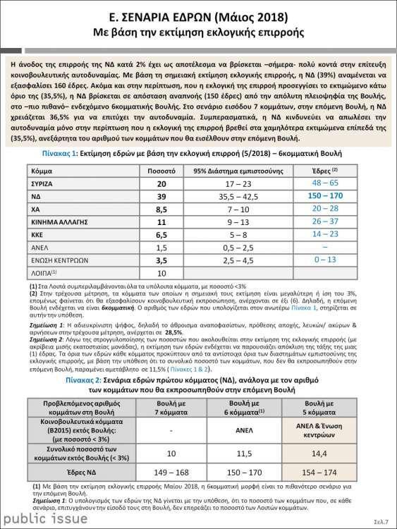 Eιδικότερα, με βάση την εκτίμηση εκλογικής επιρροής της Public Issue για τον Μάιο του 2018, προκύπτουν τα εξής βασικά συμπεράσματα: