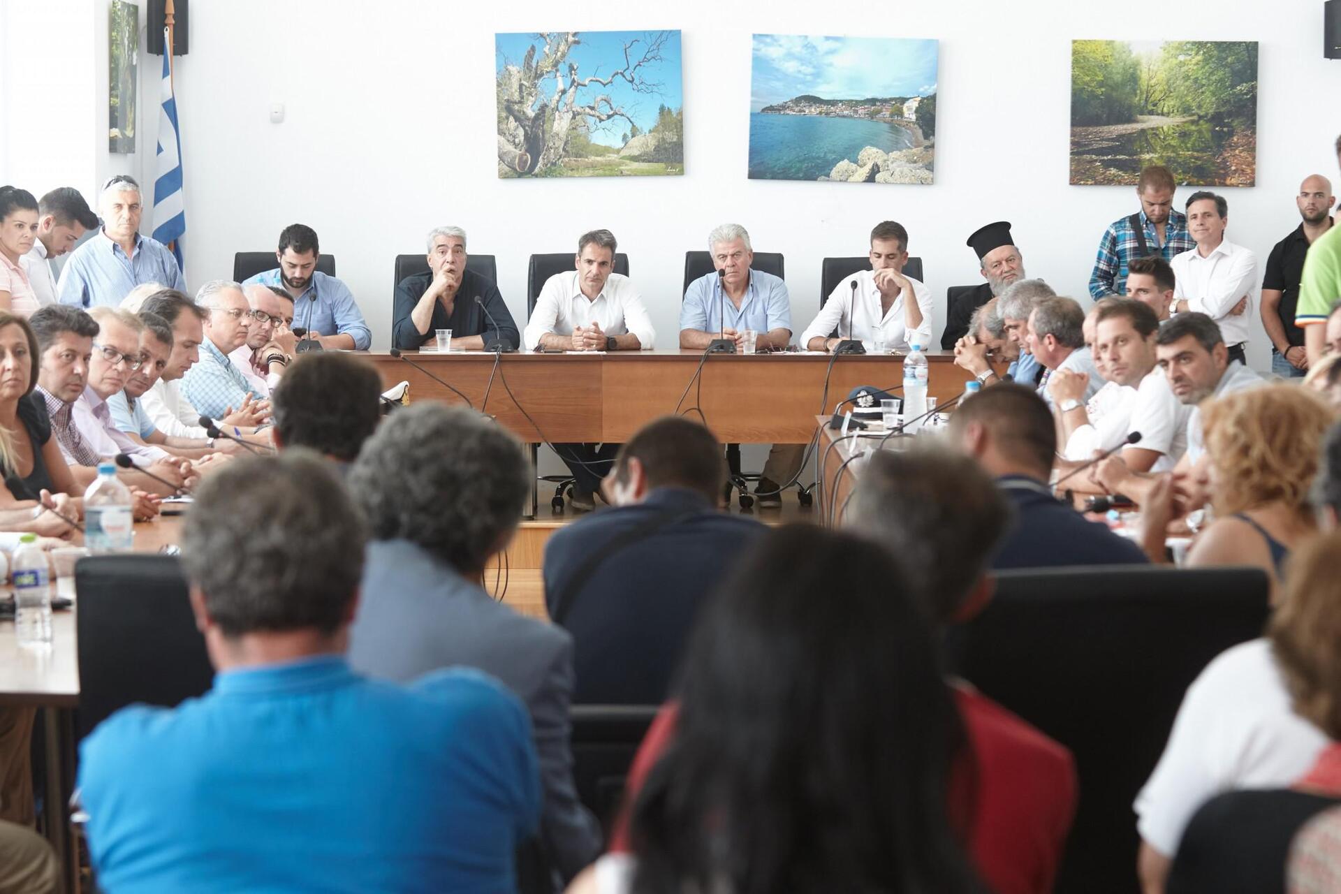 Ο αρχηγός της ΝΔ ενημερώθηκε από τον υπαρχηγό του Πυροσβεστικού Σώματος, ενώ στη συνέχεια μετέβη στη Λίμνη, όπου πραγματοποιήθηκε σύσκεψη με τοπικούς φορείς.