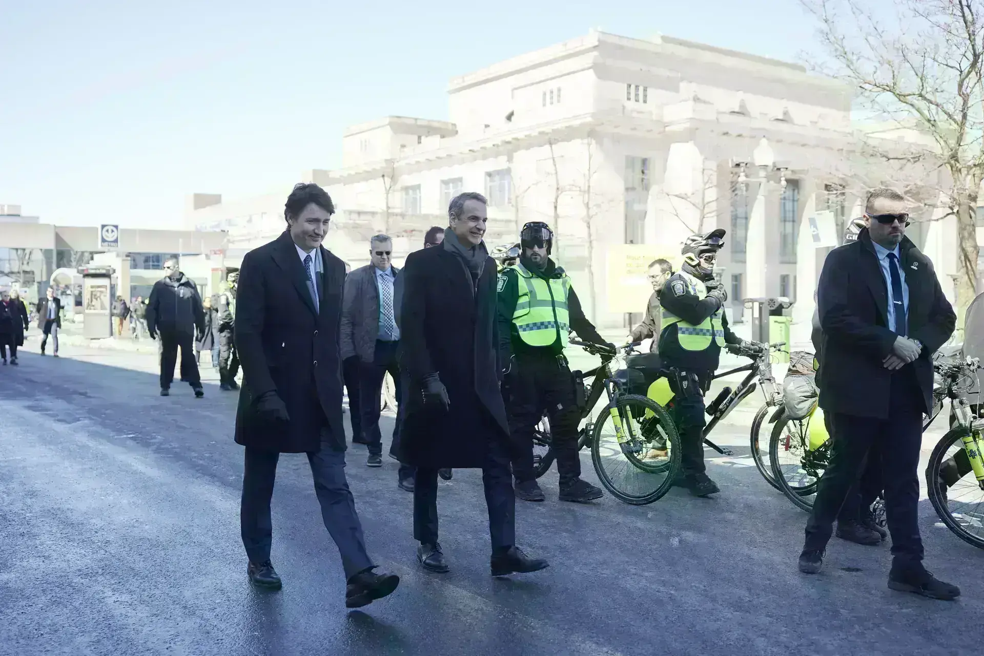 Νωρίτερα, ο Πρωθυπουργός και ο Καναδός ομόλογός του παρακολούθησαν μαζί τη δοξολογία για την εθνική εορτή της 25ης Μαρτίου στον Ναό του Ευαγγελισμού της Θεοτόκου.