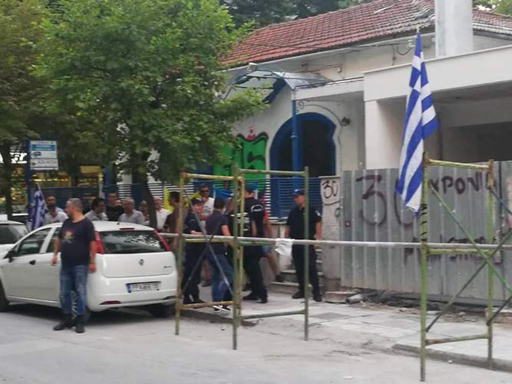 Σύμφωνα με το onlarissa.gr μια ομάδα πολιτών περίμεναν τον υφυπουργό έξω από το Χατζηγιάννειο και φώναξαν συνθήματα κατά της συμφωνίας των Πρεσπών.