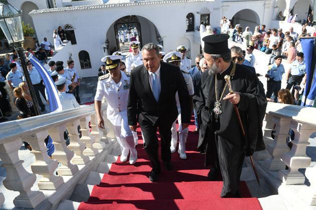 Ο Υπουργός Εθνικής Άμυνας βρέθηκε στον Ιερό ναό της Ευαγγελιστρίας στην Τήνο, στο πλαίσιο των εορτασμών της Κοιμήσεως της Θεοτόκου και διάβασε το «Πάτερ ημών» και το «Πιστεύω».