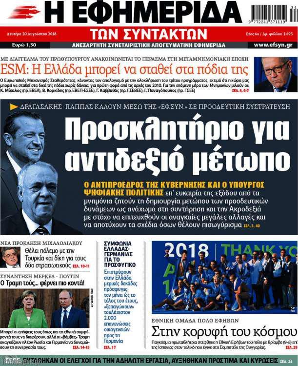 Συγκεκριμένα, ο αντιπρόεδρος της κυβέρνησης Γιάννης Δραγασάκης και ο υπουργός Ψηφιακής Πολιτικής Νίκος Παππάς με δηλώσεις τους στην Εφημερίδα των Συντακτών, καλούν τους πολίτες σε συστράτευση για την δημιουργία αντιδεξιού μετώπου!