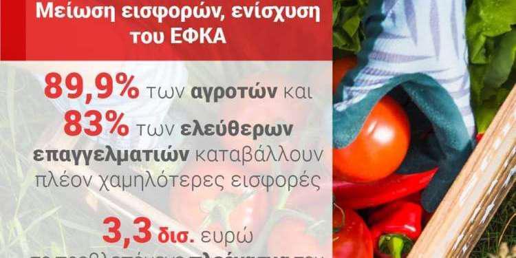 89,9% των αγροτών και 83% των ελεύθερων επαγγελματιών καταβάλλουν πλέον χαμηλότερες εισφορές. 3,3 δισ. ευρώ το προβλεπόμενο πλεόνασμα του ΕΦΚΑ για το 2019″