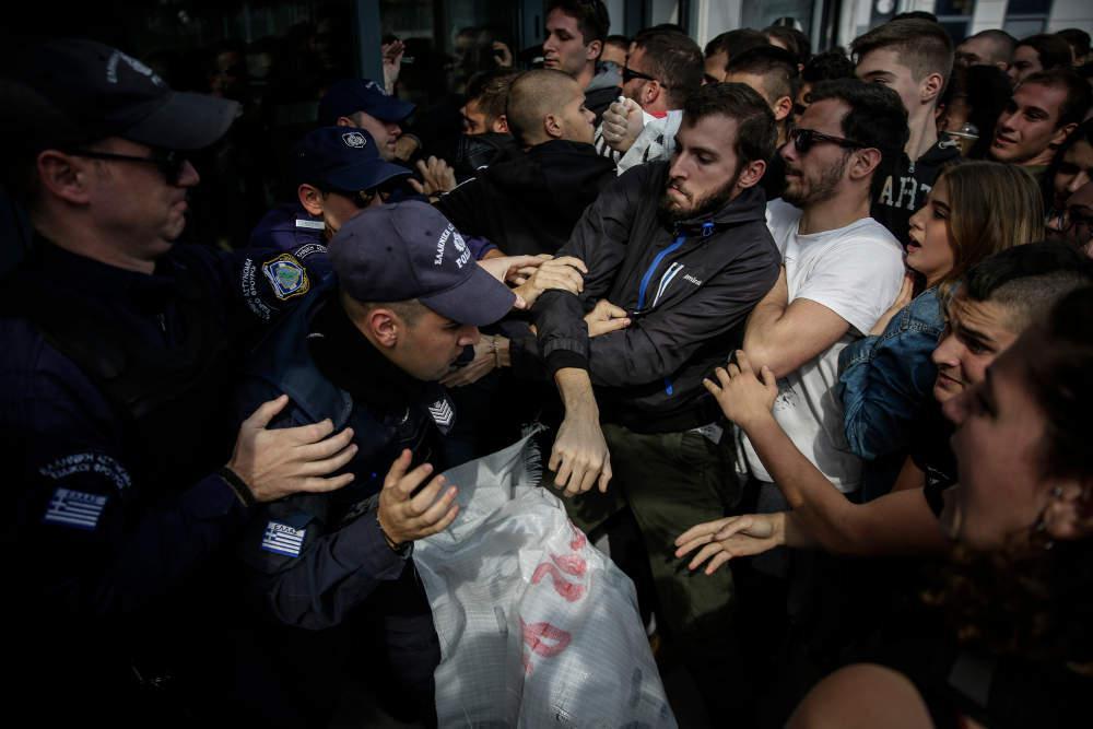 Μαθητές και φοιτητές μπήκαν στο προαύλιο του υπουργείου Παιδείας φωνάζοντας συνθήματα κατά του νόμου Γαβρόγλου.