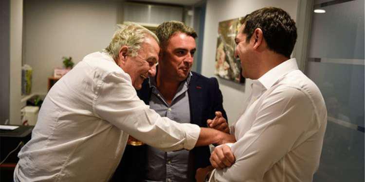 Ο Μανώλης Πετσίτης στις φωτογραφίες φαίνεται να είναι αγκαζέ με τον Αλέκο Φλαμπουράρη και να μιλάει με τον Αλέξη Τσίπρα.