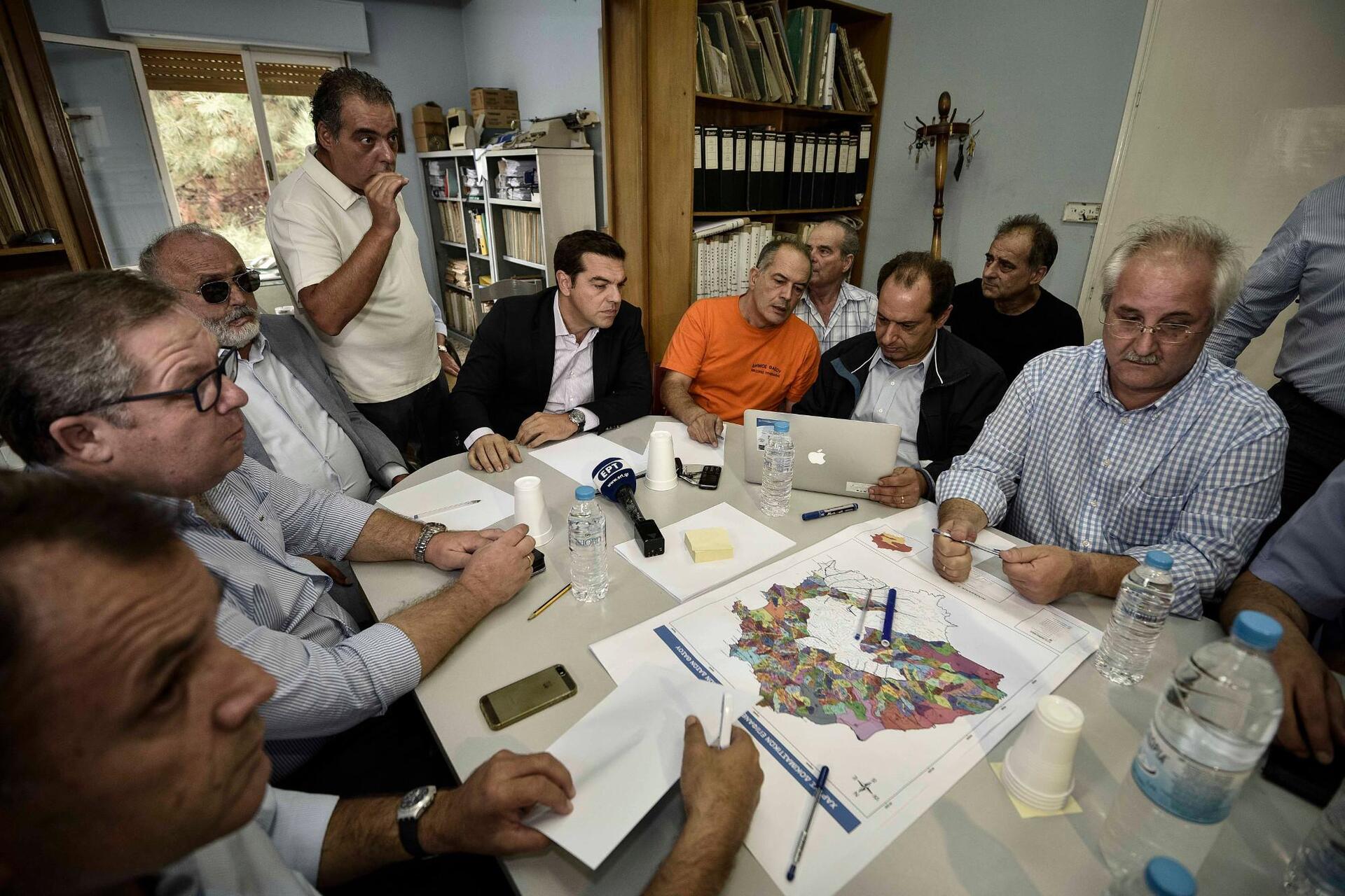 Ο κ. Τσίπρας είχε φτάσει νωρίτερα στον Πρίνο της Θάσου με στρατιωτικό ελικόπτερο τύπου Σινούκ, προκειμένου να ενημερωθεί για την κατάσταση που επικρατεί και τα προβλήματα που έχουν δημιουργηθεί από την πυρκαγιά. Στο ελικοδρόμιο, τον υποδέχθηκε ο δήμαρχος Θάσου, Κώστας Χατζηεμμανουήλ, ο οποίος τον ενημέρωσε για την πορεία του έργου κατάσβεσης της πυρκαγιάς. Ο πρωθυπουργός έδειξε ενδιαφέρον για την υγεία των πέντε πυροσβεστών που τραυματίστηκαν και ο δήμαρχος του είπε πως οι τέσσερις έχουν επιστρέψει στα σπίτια τους και ένας μόνο εξακολουθεί να νοσηλεύεται με κάταγμα στο πόδι.