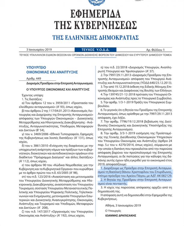 «Αντί να ζητάτε κ. Βενιζέλε να σας κάνω τώρα μία δήλωση το τι θα κάνω αν τυχόν η σημερινή αντιπολίτευση αναλάβει κυβέρνηση εγώ θα έλεγα να περιμένετε να δείτε πως θα συμπεριφερθώ στη θέση αυτή και ευχαρίστως πολύ σύντομα μέσα σε λίγους μήνες να είμαι και πάλι εδώ και να λογοδοτήσω για την περαιτέρω διαχείριση της αρχής ανταγωνισμού»