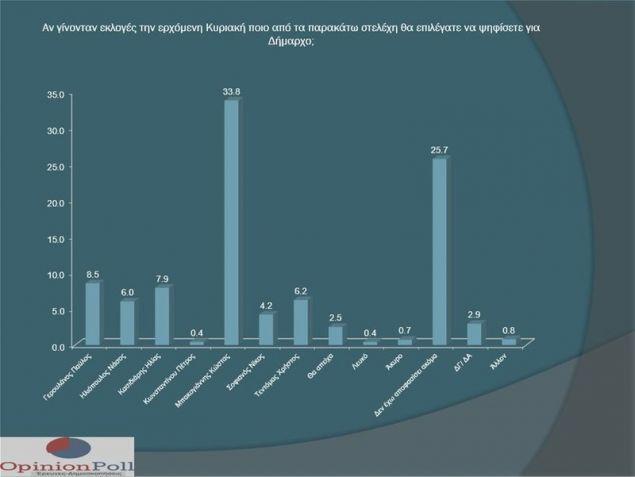 Να σημειωθεί βέβαια, ότι το 25,7% των ερωτηθέντων απάντησαν πως ακόμα δεν έχουν αποφασίσει ποιον δήμαρχο θα ψηφίσουν.