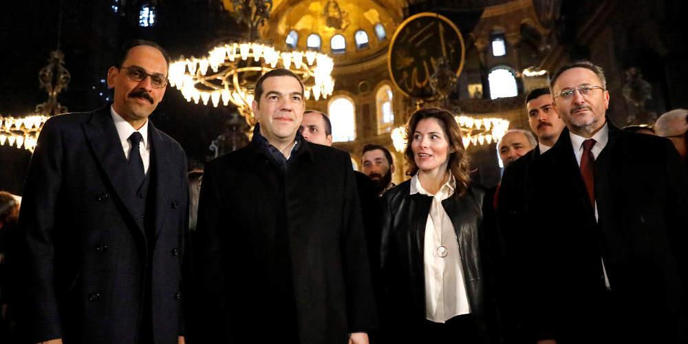 Περίπου στις 9.15 το πρωί ο πρωθυπουργός ξεναγήθηκε στην Αγία Σοφία. Τον Αλέξη Τσίπρα συνόδευε ο εκπρόσωπος του Ρετζέπ Ταγίπ Ερντογάν Ιμπραήμ Καλίν όπως φαίνεται στην πρώτη φωτογραφία που δημοσίευσε η εφημερίδα Hurriyet.