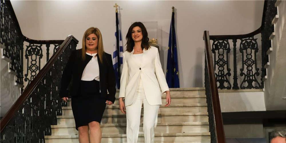 Υποδεχόμενη τη νέα υφυπουργό η Κατερίνα Νοτοπούλου μίλησε με θερμά λόγια για την Ελευθερία Χατζηγεωργίου και δήλωσε σίγουρη ότι θα έχει μια παραγωγική θητεία στο ΥΜΑΘ.