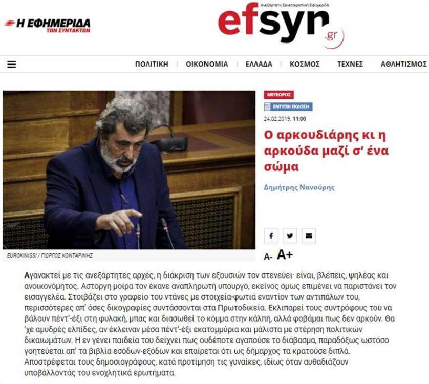 Ολόκληρο το άρθρο της Εφημερίδας των Συντακτών: