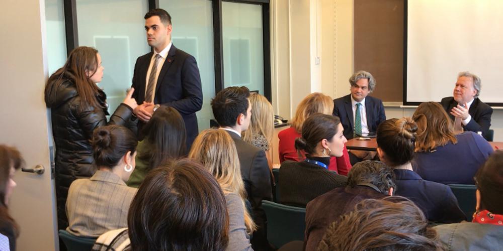 Παρόντες στην αίθουσα ήταν η Μόνιμη Αντιπρόσωπος της Ελλάδας στον ΟΗΕ, Μαρία Θεοφίλη, ο Γενικός Πρόξενος της Ελλάδας στη Νέα Υόρκη Κωνσταντίνος Κούτρας, ο Αναπληρωτής Μ.Α., Διονύσης Καλαμβρέζος και η πρόξενος Λάνα Ζωχιού.