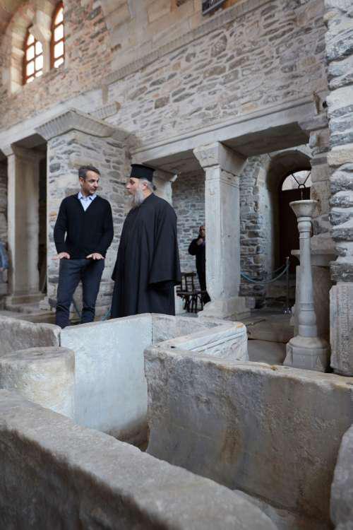 O πρώτος προορισμός του κ. Μητσοτάκη ήταν το δημαρχείο του νησιού όπου συναντήθηκε με τον δήμαρχο της Νάξου και δημοτικούς συμβούλους.