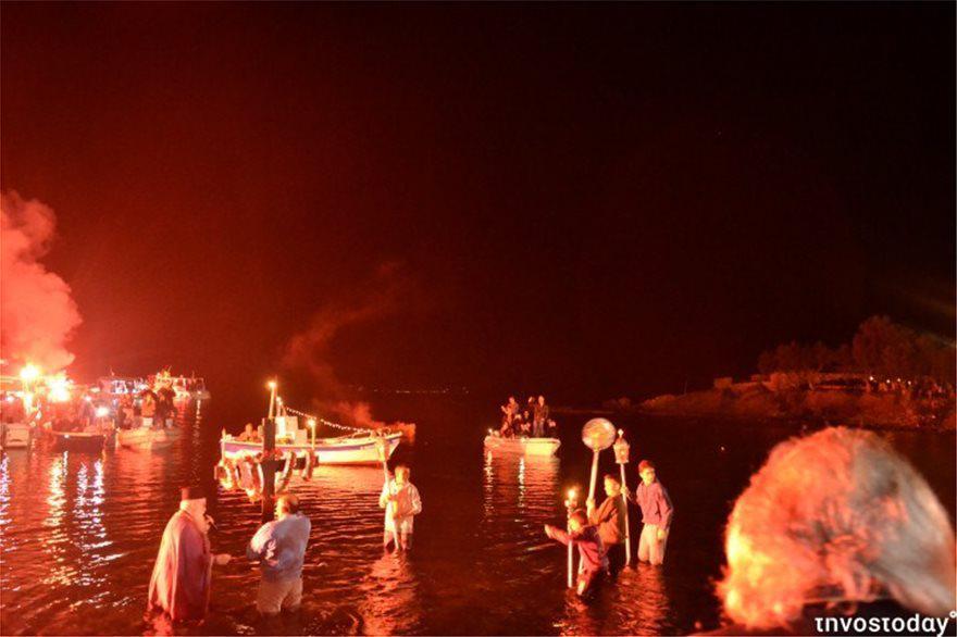Οι βάρκες που τον συνόδευαν δια θαλάσσης, έδιναν ένα ξεχωριστό τόνο φωτίζοντάς την όλη τελετή με πυρσούς. Εντυπωσιακή ήταν η συμμετοχή του κόσμου και των επισκεπτών του νησιού, καθώς μια τεράστια πομπή συνόδευσε την περιφορά του Επιτάφιου.