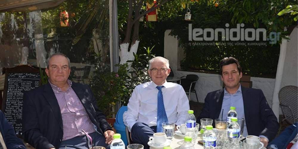 Σύμφωνα με το leonidion.gr ο πρώην πρωθυπουργός απόλαυσε τον καφέ του σε κεντρικό παραδοσιακό καφενείο της αρκαδικής κωμόπολης, παρέα με τον πρώην υπουργό Υγείας Ανδρέα Λυκουρέντζο, τον Δημήτρη Ευσταθίου, τον δήμαρχο Νότιας Κυνουρίας Χαράλαμπο Λυσίκατο, τον αντιδήμαρχο Κώστα Διαμαντή και τον δημοτικό σύμβουλο Ηλία Μάνο.