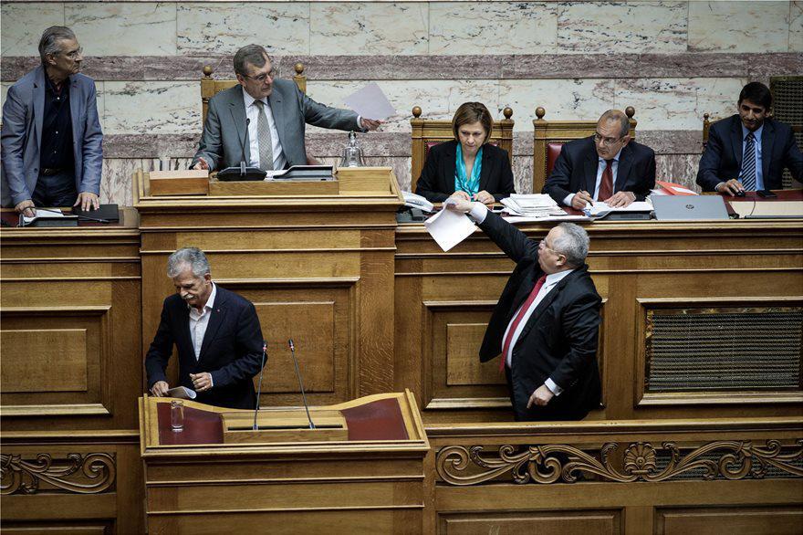 Ο πρώην υπουργός Εξωτερικών σε έξαλλη κατάσταση είπε «Να παραιτηθείτε από το προεδρείο» στον προεδρεύοντα εκείνη την ώρα Δημήτρη Κρεμαστινό και πρόσθεσε Αφήστε τα κόλπα όλοι σας…» .