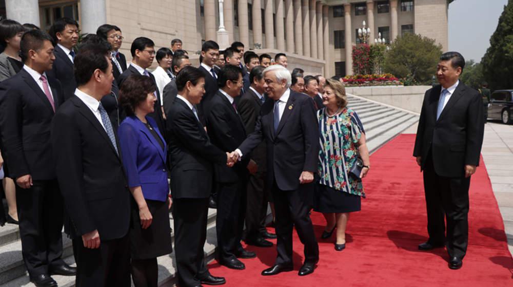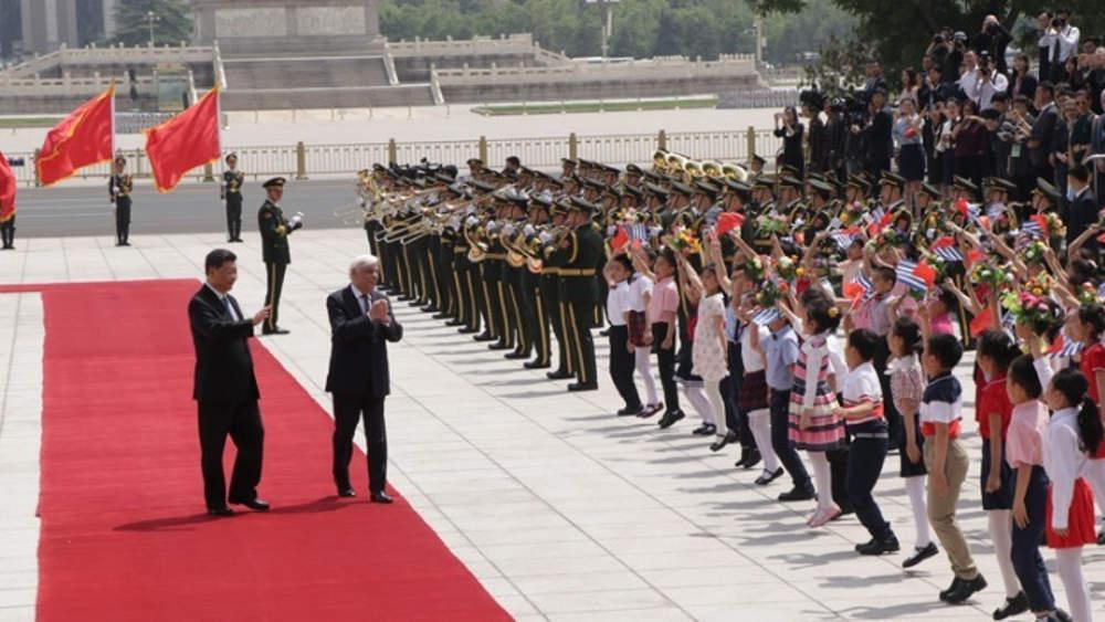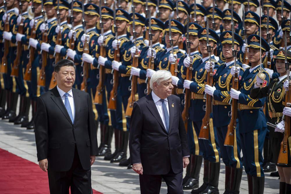 Ο Κινέζος Πρόεδρος υποδέχθηκε στην είσοδο του Μεγάρου του Λαού τον κ. Παυλόπουλο και στη συνέχεια οι δύο ηγέτες επιθεώρησαν τιμητικό άγημα της Προεδρικής Φρουράς της Κίνας, ενώ δεκάδες μαθητές και μαθήτριες, που είχαν συγκεντρωθεί έξω από το Μέγαρο του Λαού, υποδέχθηκαν τους δύο άνδρες κρατώντας στα χέρια σημαίες της Ελλάδας και της Κίνας.