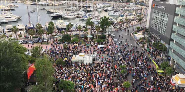 Ο πρωθυπουργός έστρεψε τα πυρά του τόσο κατά του Κυριάκου Μητσοτάκη, όσο και εμμέσως κατά του Βαγγέλη Μαρινάκη: «Ο Πειραιάς ήταν ανέκαθεν το πεδίο της μάχης του εργατικού και του λαϊκού συστήματος. Το παλιό κατεστημένο που χρεοκόπησε τη χώρα, σχεδίαζε την παλινόρθωσή του. Στην αρχή σχεδίαζε την αριστερή παρένθεση, την αποτυχία, είχαν ταυτιστεί με τους πιο σκληρούς δανειστές. Αργότερα προεξοφλούσαν ότι φέραμε τον κοινωνικό όλεθρο και την καταστροφή, ότι θα κόψουμε τις συντάξεις, ότι δεν θα βγούμε από τα μνημόνια. Και όσο έκαναν αυτές τις προβλέψεις, είχαν συσσωρεύσει ΜΜΕ στη δική τους γραμμή πυρός. Και θέλανε πρώτα στον Πειραιά να στρέψουν το λαό εναντίον μας, να δημιουργήσουν αμφιβολίες στους πολίτες», ανέφερε χαρακτηριστικά και συνέχισε: