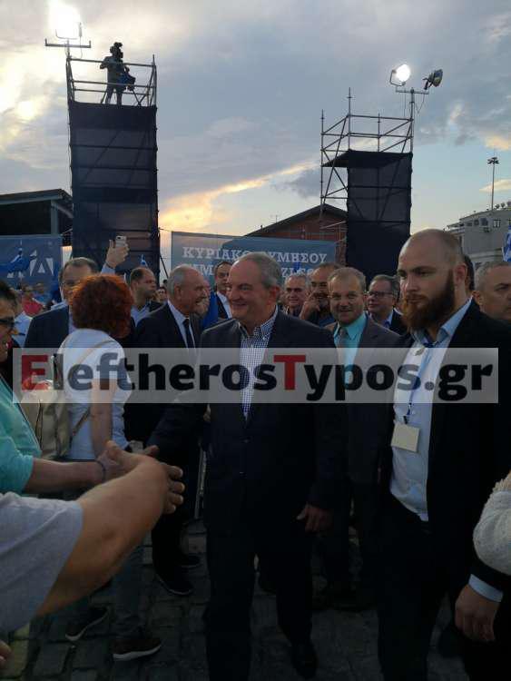 Οι δυο πρώην πρωθυπουργοί έφτασαν στο λιμάνι της Θεσσαλονίκης με διαφορά λίγων λεπτών. Φίλοι της ΝΔ τους υποδέχθηκαν με φιλιά, αγκαλιές, συνθήματα και σέλφι.