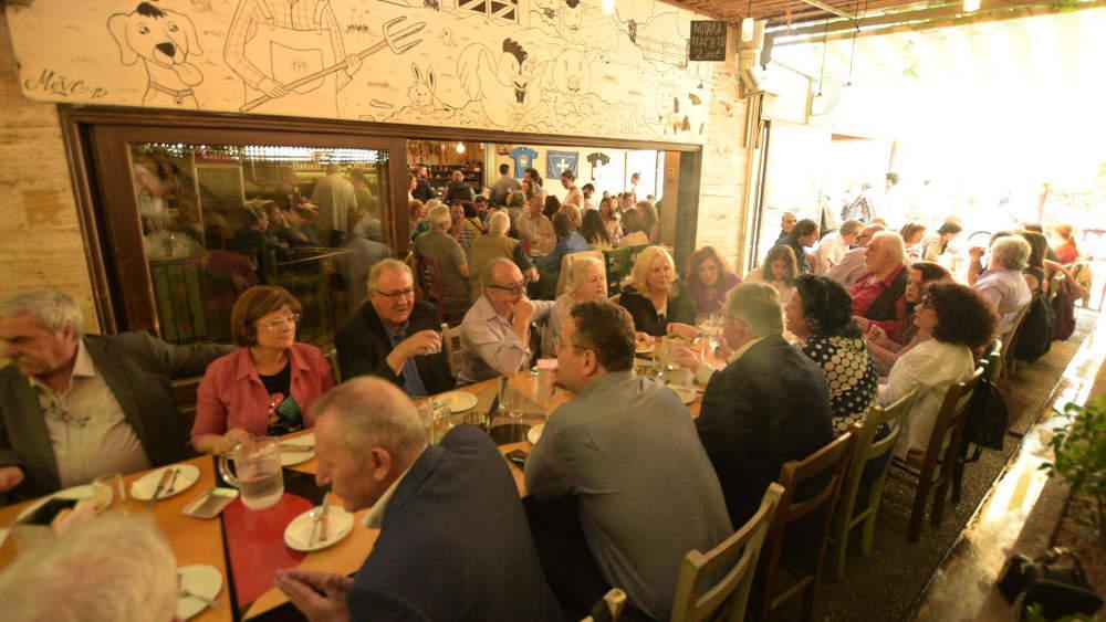 Το γεύμα του Δημήτρη Κουτσούμπα με τους δημοσιογράφους στο Περιστέρι