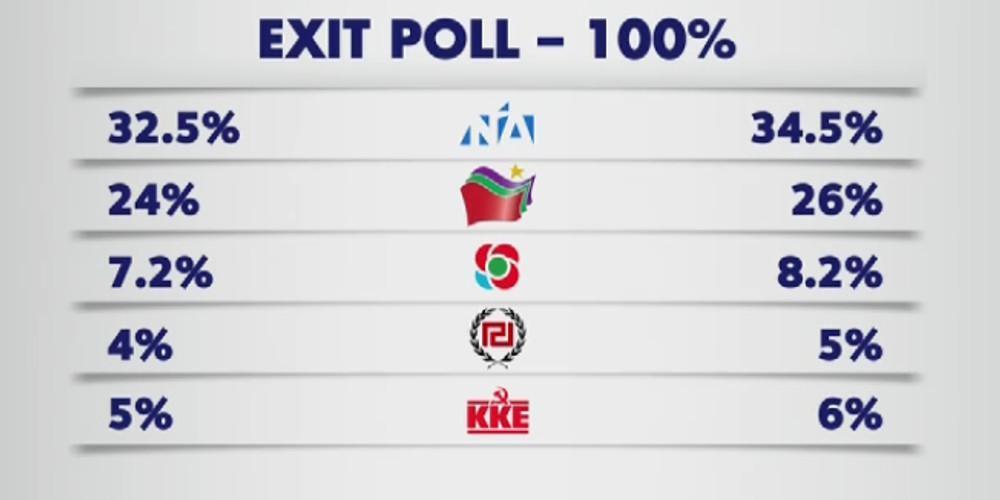Πιο συγκεκριμένα η Νέα Δημοκρατία λαμβάνει ποσοστό από 32,5 μέχρι 34,5 % ενώ ο ΣΥΡΙΖΑ έχει από 24 έως 26%