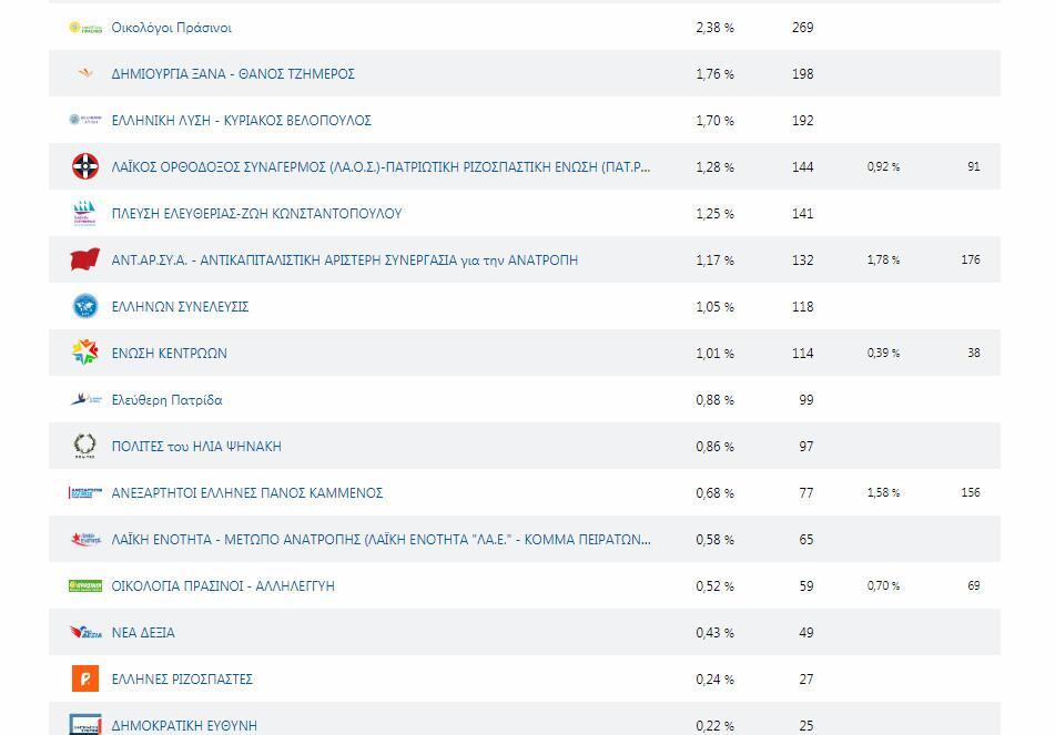 Η ΝΔ ήρθε πρώτο κόμμα με 33,89% ενώ ακολουθεί ο ΣΥΡΙΖΑ και σε απόσταση αναπνοής το ΚΚΕ.