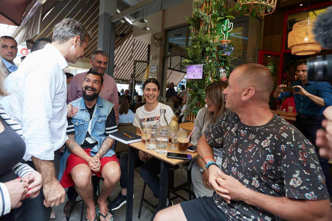 Ακολούθως, ο κ. Μητσοτάκης περπάτησε στους δρόμους της πόλης. Μια γυναίκα τον σταμάτησε και τον ρώτησε αν θα συνεχιστεί η παροχή ιατροφαρμακευτικής περίθαλψης για όσους παραμένουν επί χρόνια άνεργοι. «Δεν θα υπάρχει άνθρωπος στην Ελλάδα που θα μείνει χωρίς ιατροφαρμακευτική περίθαλψή», τη διαβεβαίωσε ο κ. Μητσοτάκης και υπενθύμισε: «Εμείς καθιερώσαμε το 2014 την περίθαλψη για όλους».