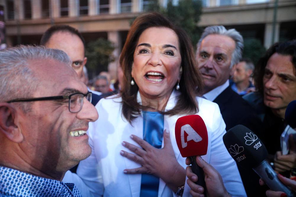 Εν μέσω χειροκροτημάτων έφτασε νωρίτερα στο εκλογικό κέντρο του Κώστα Μπακογιάννη έφτασε νωρίτερα η μητέρα του, Ντόρα Μπακογιάννη.
