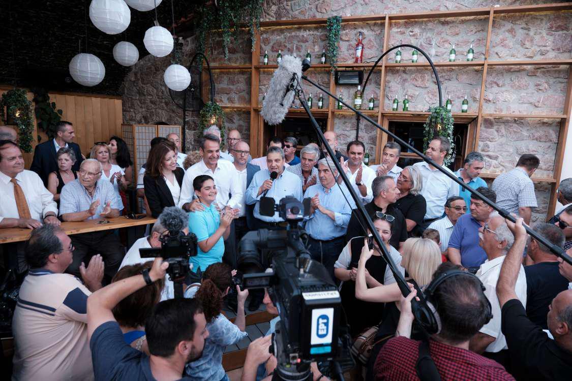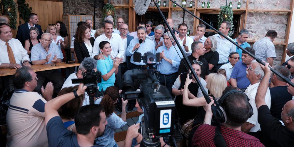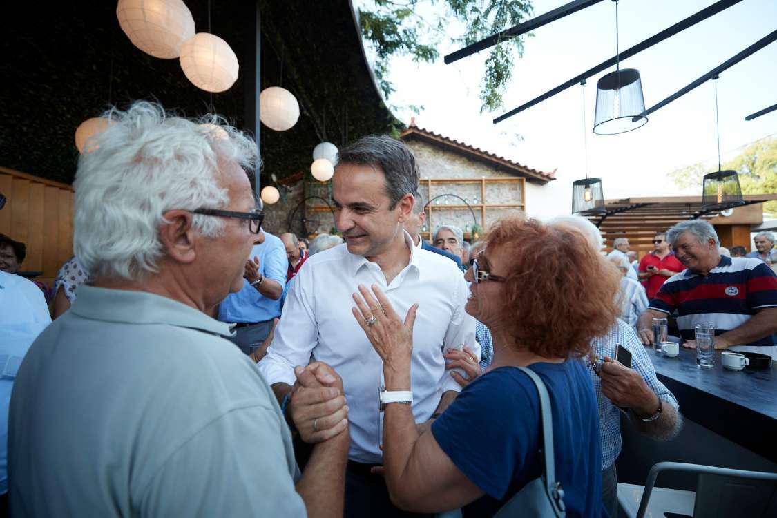 Μιλώντας σε εκατοντάδες πολίτες, έθεσε το βασικό δίλημμα των εκλογών: «αν θα δώσουμε ένα οριστικό τέλος σε αυτή την κρίση ή αν θα συνεχίσουμε στο τέλμα, τη στασιμότητα, την υπερφορολόγηση και την ανασφάλεια». Ο κ. Μητσοτάκης επανέλαβε τις βασικές προτεραιότητες της Νέας Δημοκρατίας για μείωση της φορολογίας, απελευθέρωσης της επιχειρηματικότητας από τα δεσμά της γραφειοκρατίας, αποκατάστασης του αισθήματος ασφάλειας και ενίσχυσης της δημόσιας παιδείας.