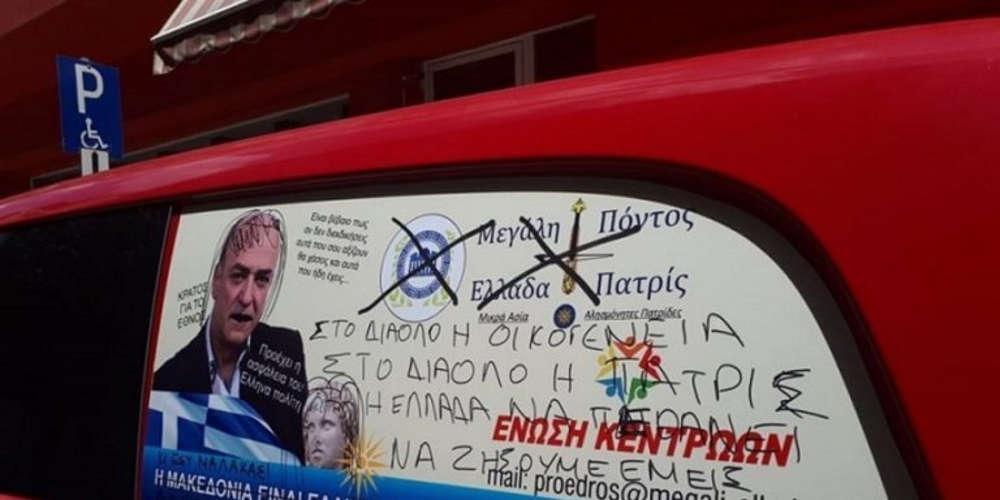 Όλο το αυτοκίνητο ήταν καλυμμένο με υβριστικά μηνύματα, τόσο για τον ίδιο όσο και γενικότερο, για την πατρίδα και την οικογένεια.