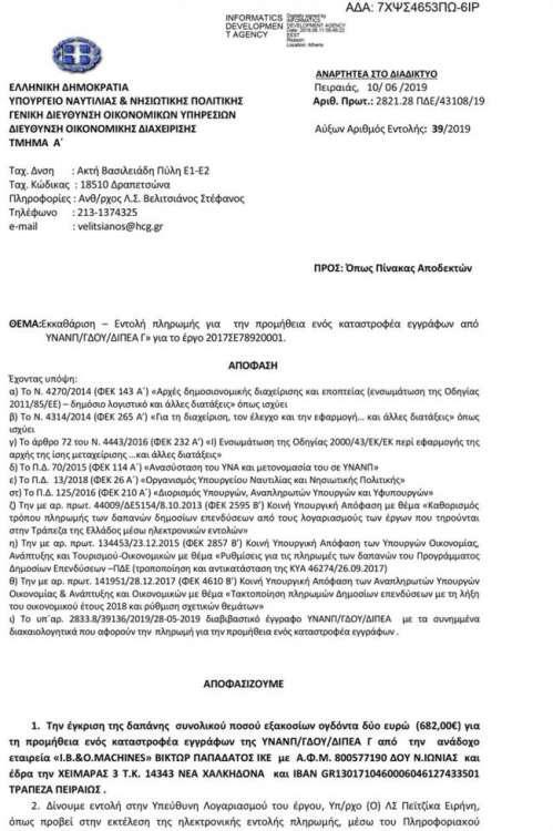 Τουλάχιστον τέσσερα υπουργεία ( υπουργείο Προστασίας του Πολίτη, Μεταναστευτικής Πολιτικής, Εθνικής Αμυνας και Ναυτιλίας) προχώρησαν σε παραγγελίες για καταστροφείς εγγράφων, ενώ η γενική γραμματεία του πρωθυπουργού προχώρησε στη συντήρηση αντίστοιχου μηχανήματος ήδη πριν από τις ευρωεκλογές.