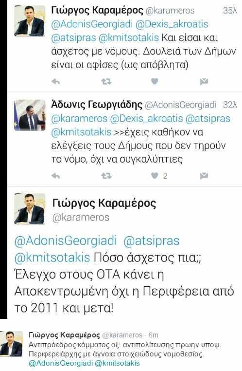 Η αφισοκόλληση στάθηκε αφορμή για να ξεσπάσει κόντρα ανάμεσα στον Άδωνι Γεωργιάδη και τον Γιώργο Καραμέρο.