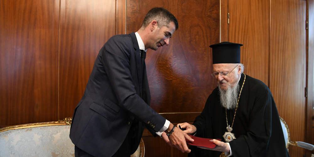 Ο Οικουμενικός Πατριάρχης έδωσε τις Πατριαρχικές ευχές και την ευλογία του στο νεοεκλεγέντα Δήμαρχο Αθηναίων, τον συνεχάρη για την εκλογή του και του ευχήθηκε κάθε επιτυχία στο έργο που αναλαμβάνει.