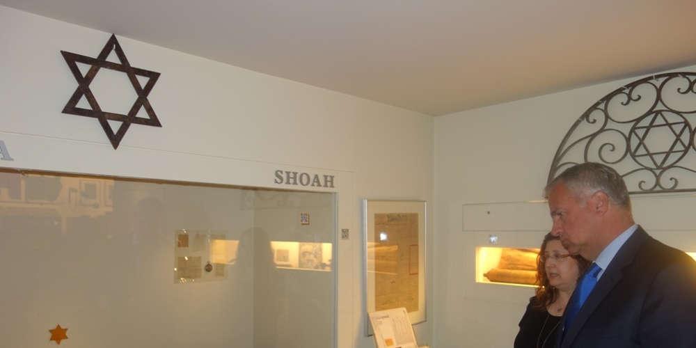 Τον υποδέχθηκαν ο Πρόεδρος του Μουσείου, Σαμουήλ Μάτσας, ο αντιπρόεδρος του Κεντρικού Ισραηλιτικού Συμβουλίου, Βενιαμίν Αλμπάλας και ο Γενικός Γραμματέας του ΚΙΣ, Βίκτωρ Ελιέζερ. Τον Υπουργό ξενάγησε, σε όλα τα τμήματα, η διευθύντρια του Μουσείου, αρχαιολόγος – μουσειολόγος, Ζανέτ Μπαττίνου.