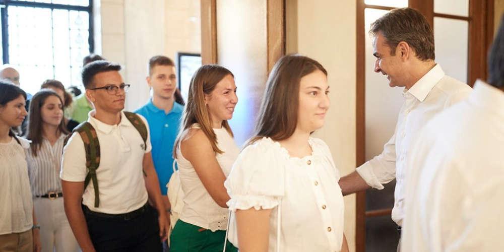 Ο πρωθυπουργός υποδέχτηκε 15 μαθητές, με τους οποίους είχε «μια εξαιρετική συζήτηση», τους ξενάγησε στο κτήριο και τους τόνισε πως «σε αυτό το κτήριο είμαστε όλοι προσωρινοί για όσο καιρό το επιλέγουν οι πολίτες».