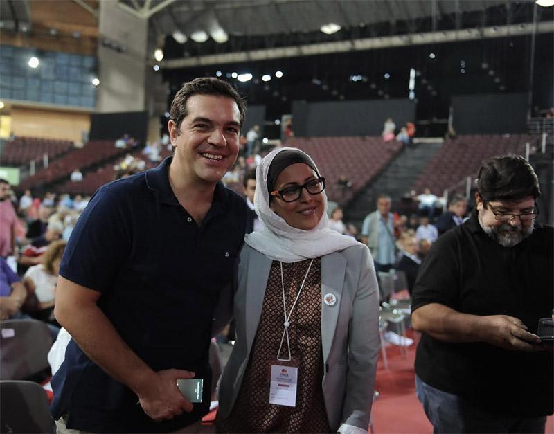 Ο πρωθυπουργός στη συνέχεια αντάλλαξε θερμές χειραψίες με συνέδρους, εκπροσώπους κομμάτων από διάφορες χώρες, ενώ την ώρα που έβγαζε φωτογραφίες με τη χαμογελαστή σύνεδρο που φορούσε μαντήλα, τις πόζες διέκοψε το κινητό του κ.Τσίπρα.