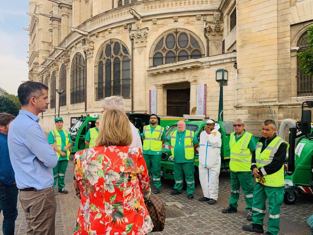 Μια ημέρα μετά την ορκωμοσία του, στις 4.30 τα ξημερώματα , ο Κώστας Μπακογιάννης, ο οποίος αναλαμβάνει από 1η Σεπτεμβρίου την διοίκηση του Δήμου, βρισκόταν στο αμαξοστάσιο της καθαριότητας ενός από τα κεντρικά Διαμερίσματα του Παρισιού που αντιμετωπίζει παρόμοιες προκλήσεις με την Αθήνα: Μεγάλο αριθμό επισκεπτών , πολλά ιστορικά μνημεία και κτίρια κ.α.