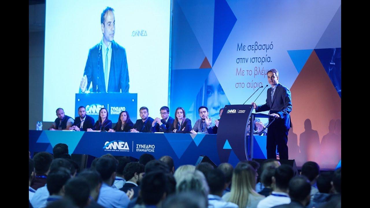 Ο κ. Μητσοτάκης τόνισε ότι οι νέοι «επλήγησαν πιο σκληρά από όλους από την κρίση και τις αδιέξοδες πολιτικές του ΣΥΡΙΖΑ» και σημείωσε: «Λέω με τόλμη και αίσθημα ευθύνης στους νέους: Ακούστε μας. Μιλήστε μας. Κάντε μας κριτική. Σπάστε τις προκαταλήψεις του χθες. Μη γίνεστε κληρονόμοι του διχασμού. Σφυρηλατήστε την ενότητα. Το αύριο, που έρχεται με ορμή, δεν θα μοιάζει με καμία άλλη περίοδο στο παρελθόν. Σε αυτό τον νέο κόσμο που δημιουργείται πρέπει να είμαστε πρωτοπόροι. Ηρθε η ώρα μαζί να ξανακερδίσουμε το χαμένο χρόνο. Μαζί να ξεμπλοκάρουμε την Ελλάδα. Μαζί να πάμε την Ελλάδα πιο μπροστά, πιο δυνατά, πιο ψηλά».