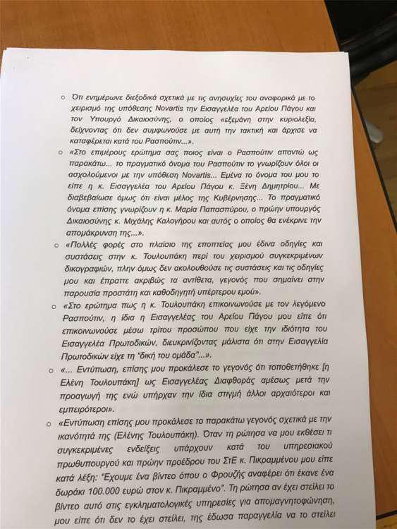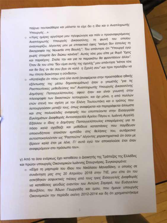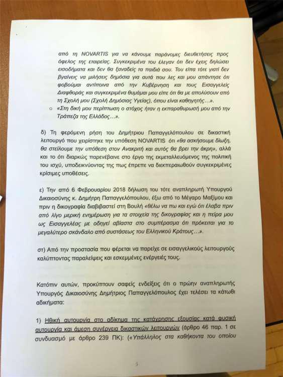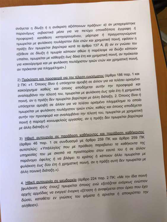 H πρόταση περιλαμβάνει δύο ηθικές αυτουργίες: Η μια αναφορικά με τα υπουργικά του καθήκοντα και η άλλη ως προς την υποκίνηση για ψευδείς καταθέσεις. Τα άλλα δύο αδικήματα είναι παράβαση καθήκοντος και πρόκληση κακουργηματικών πράξεων.