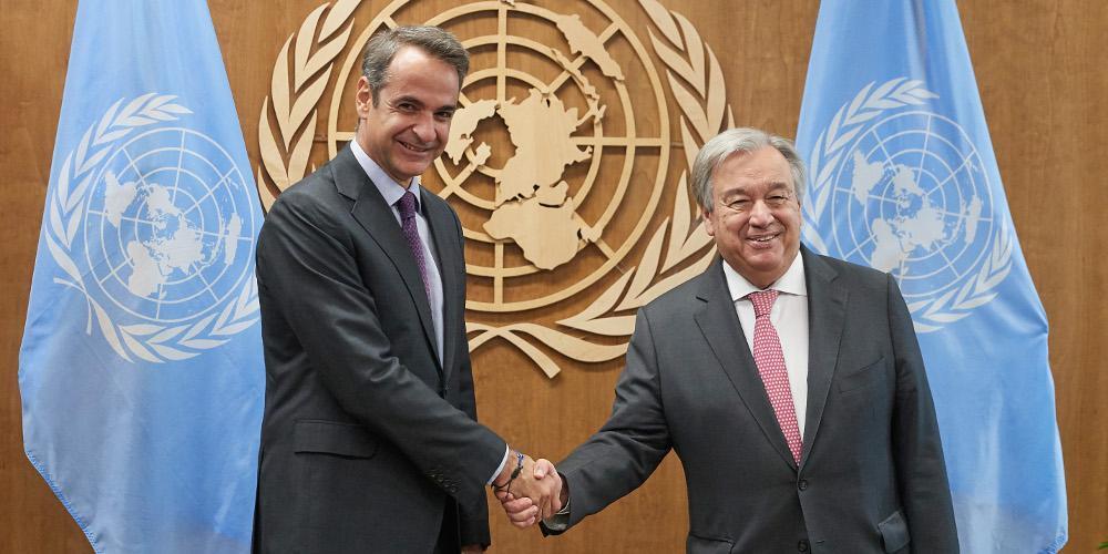 Στην δήλωσή του, ο κ. Μητσοτάκης ανέφερε: «Είχαμε μία πολύ ουσιαστική και γόνιμη συζήτηση με τον Γενικό Γραμματέα του ΟΗΕ κ. Γκουτέρες. Συζητήσαμε δύο θέματα: το πρώτο αφορά στο Κυπριακό. Ευχαρίστησα τον Γενικό Γραμματέα για την πολύ ουσιαστική συνεισφορά του και τη διαρκή προσπάθειά του στην επίλυση αυτού του ζητήματος και του επανέλαβα την αμέριστη στήριξη της Ελλάδας στα δίκαια αιτήματα της ελληνοκυπριακής κοινότητας για να βρεθεί επιτέλους δίκαιη και βιώσιμη λύση σε αυτό το χρόνιο πρόβλημα που ταλανίζει τον Ελληνισμό εδώ και 45 χρόνια».