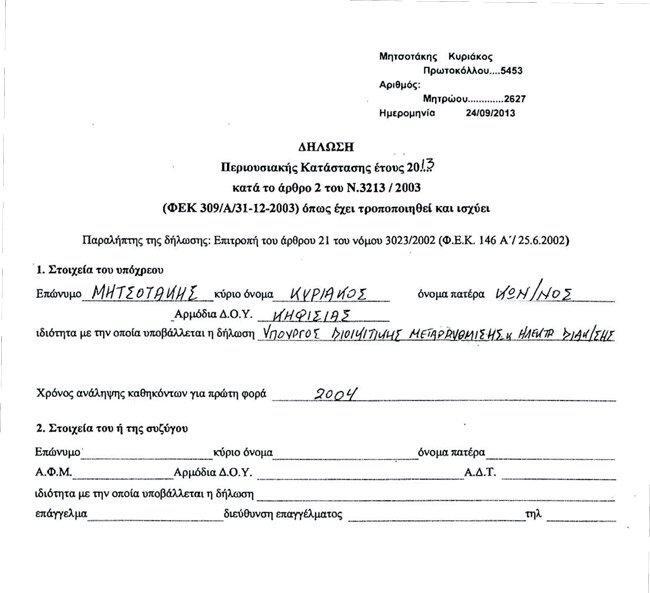 Πρόκειται για 609 δηλώσεις, οι οποίες υποβλήθηκαν από τον πρωθυπουργό, τους τέως πρωθυπουργούς, υπουργούς, υφυπουργούς, εξωκοινοβουλευτικούς υπουργούς, τέως υπουργούς και υφυπουργούς, βουλευτές και ευρωβουλευτές, νυν και τέως, καθώς και από τους υπευθύνους, νυν και τέως, των οικονομικών των κομμάτων.