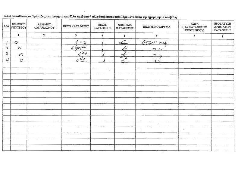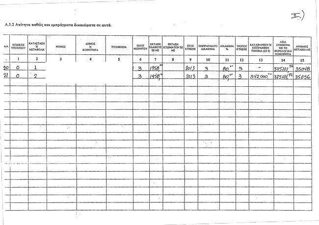 Στις εκθέσεις αυτές, μετά από σχετικό έλεγχο, έγινε πλήρης καταγραφή όλων των περιουσιακών στοιχείων (ακίνητα, εμπράγματα δικαιώματα σ΄αυτά, μετοχές ημεδαπών ή και αλλοδαπών εταιριών, ομόλογα και άλλες ομολογίες κάθε είδους και τα παράγωγα χρηματοοικονομικά προϊόντα κάθε είδους, καταθέσεις σε τράπεζες, ταμιευτήρια και άλλα ημεδαπά ή αλλοδαπά πιστωτικά ιδρύματα, πλωτά, εναέρια και χερσαία μεταφορικά μέσα, καθώς και τυχόν συμμετοχή σε κάθε είδους επιχειρήσεις). Ο έλεγχος που διενεργήθηκε απέβλεπε στη διακρίβωση του εάν, με βάση τα δηλωθέντα και ελεγχθέντα δεδομένα, η απόκτηση νέων περιουσιακών στοιχείων ή η επαύξηση υφισταμένων, εκ μέρους των υπόχρεων, δικαιολογείται από το ύψος των πάσης φύσεως εσόδων αυτών, σε συνδυασμό με τις δαπάνες διαβιώσεώς τους.